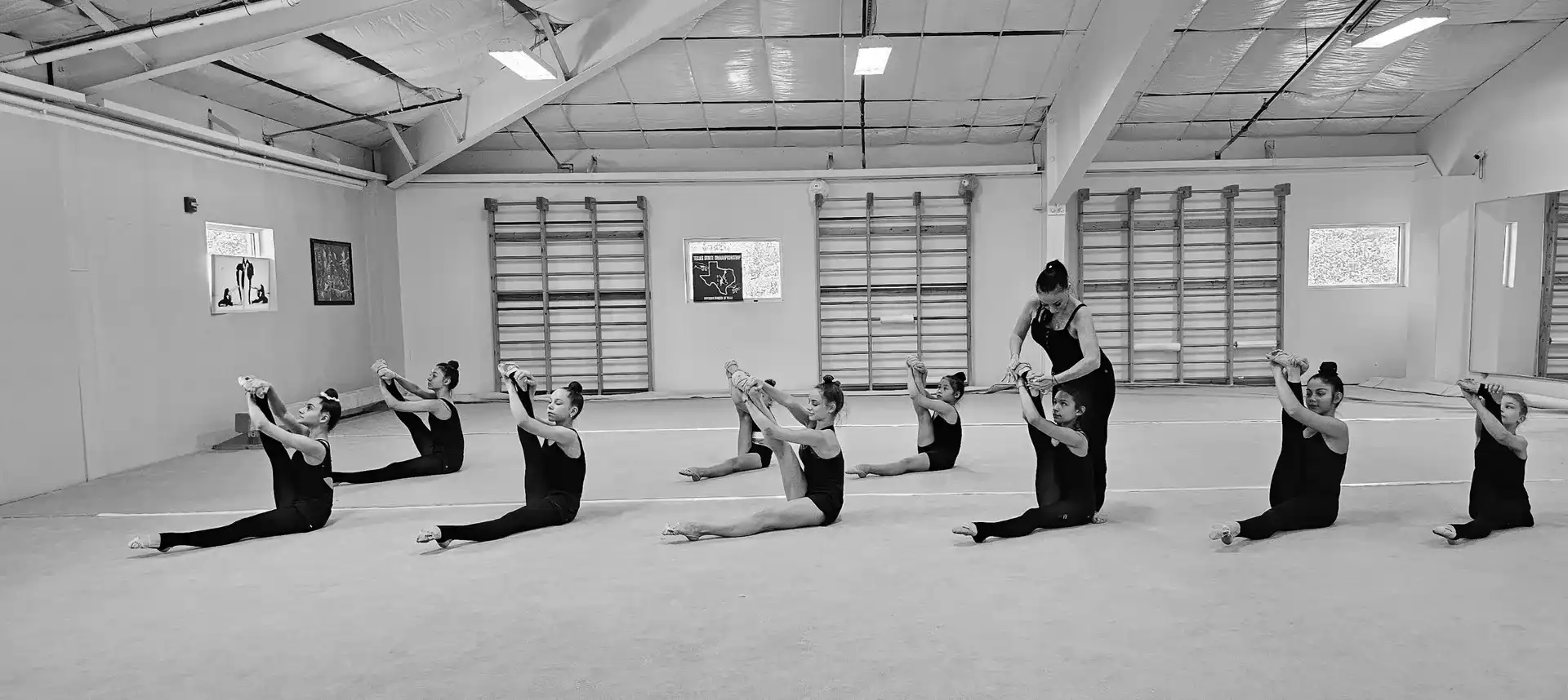 Our programs are designed for gymnasts ages 3 and up, focusing on rhythmic gymnastics. The curriculum includes fundamental body movements, apparatus handling (rope, hoop, ball, clubs, ribbon), flexibility, strength, hand-eye coordination, and basic ballet concepts.